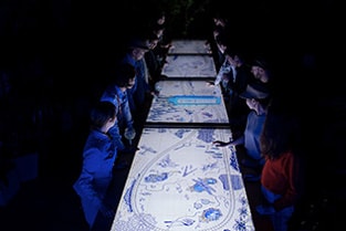 縦8m、横2mの大きなテーブルを作って、その表面をすべてタッチスクリーンにし、アニメーションで地図上に列車を走らせました。そして、地図に触ると表面の土が取り除かれ、中から香源となる植物が見つかるようにしたのです。旅をしながら10種類の香りをすべて見つけると、全体がヴィクトリームービーに変わります。お客様は、入り口で車掌姿のスタッフから切符をもらい、お酒を飲みながら、お酒の中にある香りを探していくという趣向です。