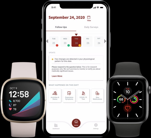 新型コロナウイルス感染症の患者のフォローに、ウェアラブル機器を活用する試みもある。金沢大学は、新型コロナ患者が重症化する状態を定量化し、症状に合った治療や対応のフォローに役立てようとしている。PCR検査で陽性と診断された30人の患者に、Fitbitのウェアラブル機器を1カ月間装着してもらい、病状とウェアラブル端末のデータを解析。言葉では伝えられない、重症化に至る複雑な条件を客観的に判定する方法を探っている。