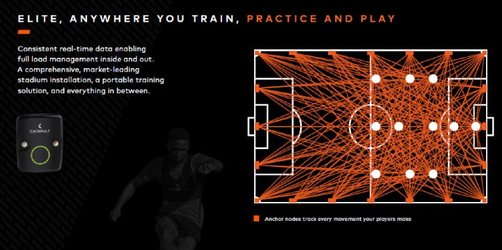 このデバイスには加速度センサーも搭載しているため、選手の活動量もわかる。リアルタイムで選手の動きを追跡し、ビデオ解析も利用して、選手がどのように動いてパスを出し、ゴールを狙ってボールを蹴ったかというようなデータを、収集、管理(紐づけ)、保存、解析する。これらをクラウドベースで行い、選手の動きが悪くなれば交替させる。