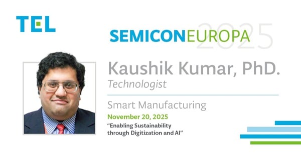 11月20日にExecutive Forumで開催されるSmart Manufacturingのセッションにて、Tokyo Electron EuropeのTechnologistであるKaushik Kumar(Ph.D.)が、「Enabling Sustainability through Digitization and AI」というテーマで登壇を予定しています。