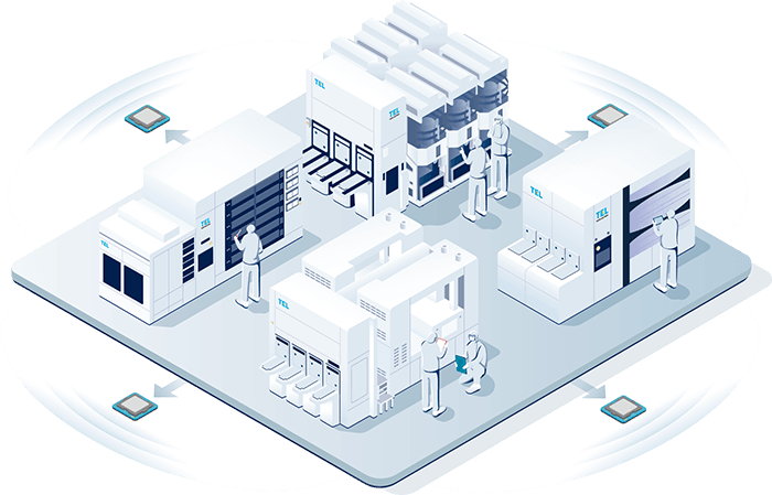 長期にわたる製造装置の研究開発とデータに基づく技術・ノウハウの蓄積、それを活かせる人材、そして何よりも、半導体メーカーさまとの厚い信頼関係を礎に、TELは世界で圧倒的なシェアを有しています。