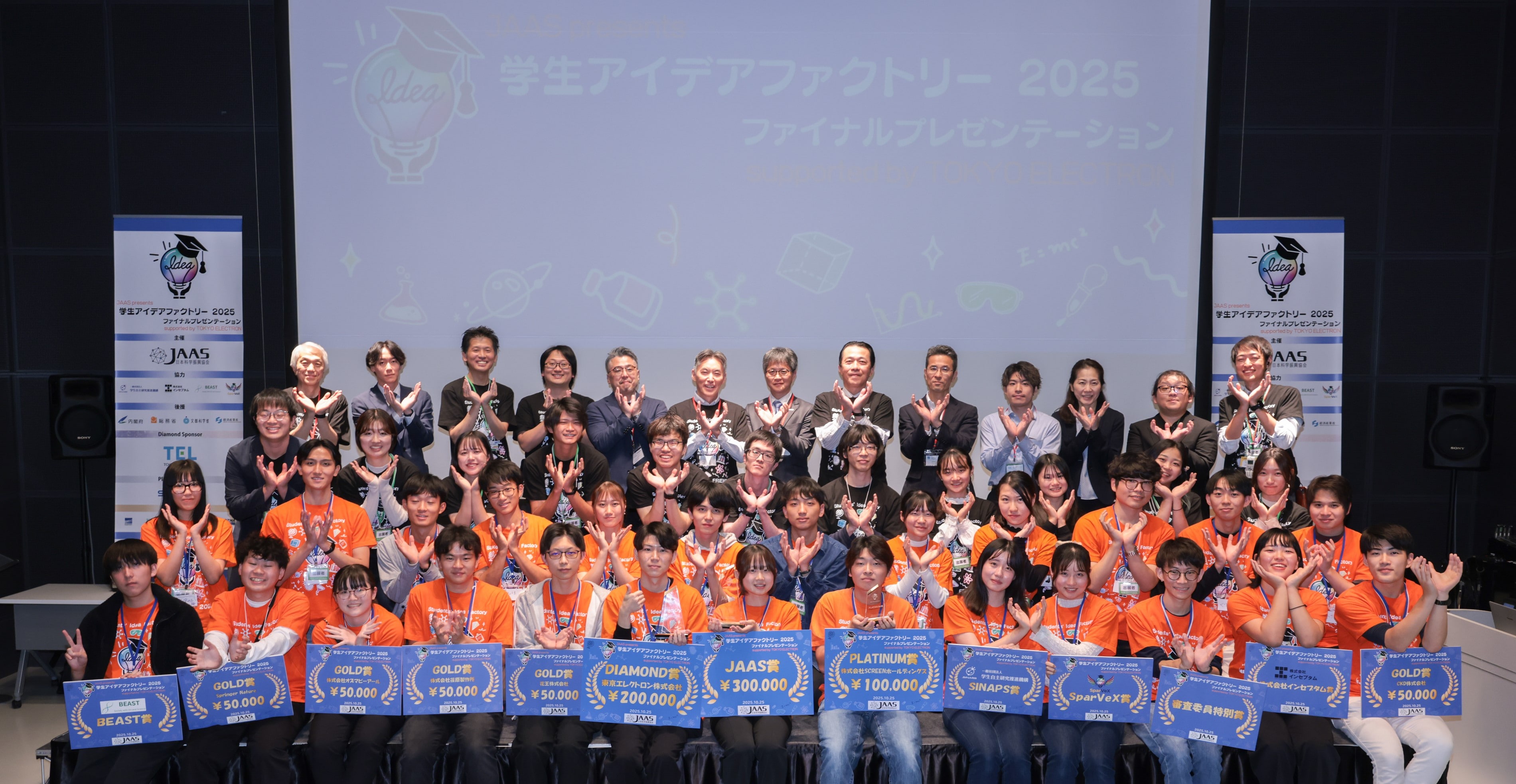 「学生の研究アイデアの祭典 学生アイデアファクトリー」は、日本科学振興協会(JAAS)が新しい「学部生向け自主研究支援プロジェクト」として、東京エレクトロン(TEL)を含む協賛企業、協力団体と共同企画をおこない、2023年4月からスタートしました。TELはこのプロジェクトをダイヤモンドスポンサーとして初回から支援しています。